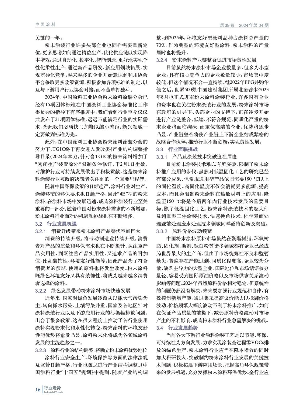 綜述了中國粉末涂料行業發展背景和動力、當前行業發展現狀,對2024–2028年粉末涂料市場規模、行業發展機遇和面臨的挑戰以及發展趨勢進行了預測,并對近年來粉末涂料行業相關政策、標準進行了總結。