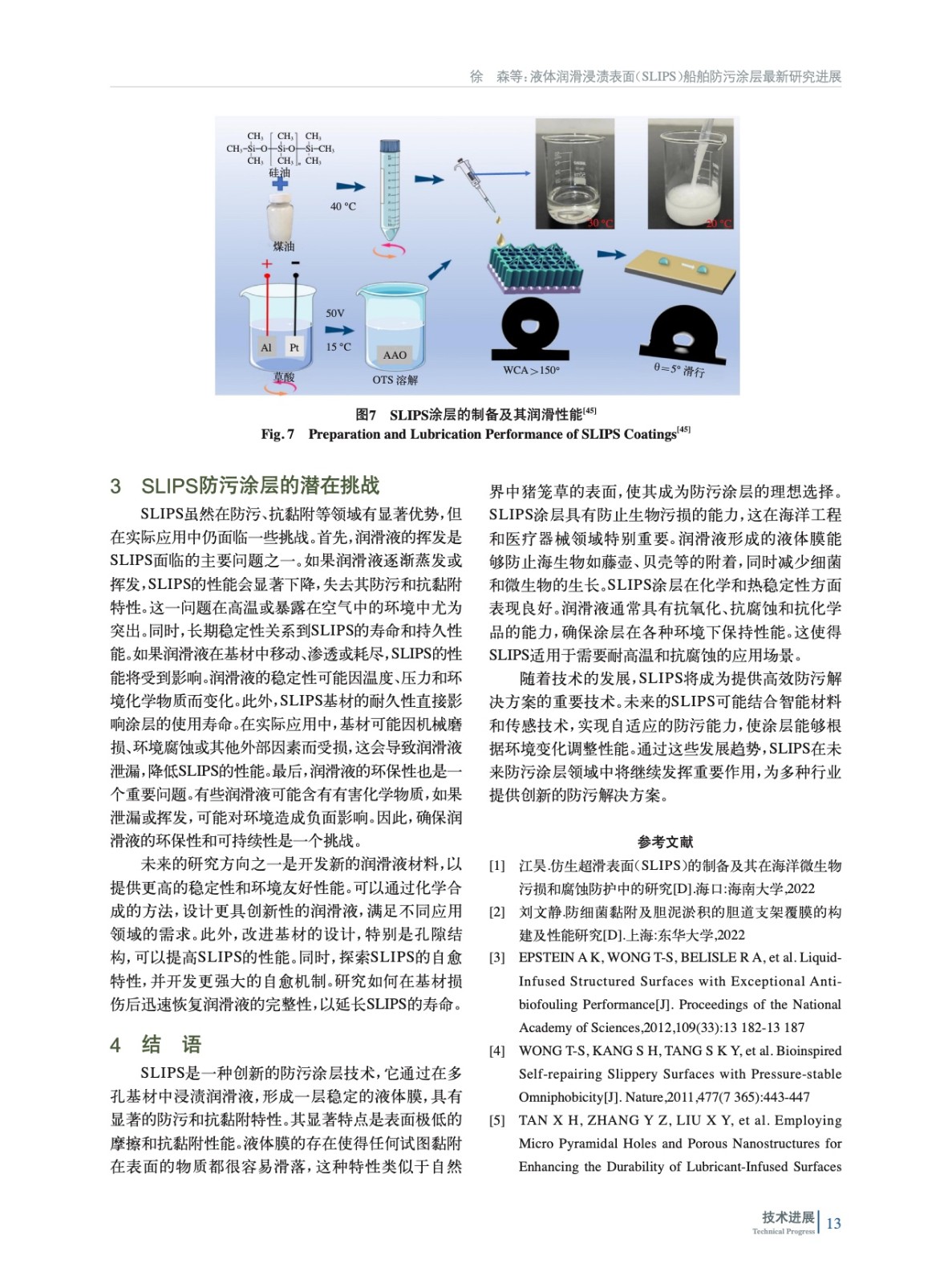 綜述了近3年來關于液體潤滑浸漬表面(SLIPS)船舶防污涂層的研究進展,特別是潤滑液的選擇與涂層的結構設計,以及這些因素如何影響涂層的整體性能,以期為未來的研究提供最新思路及研究方法。