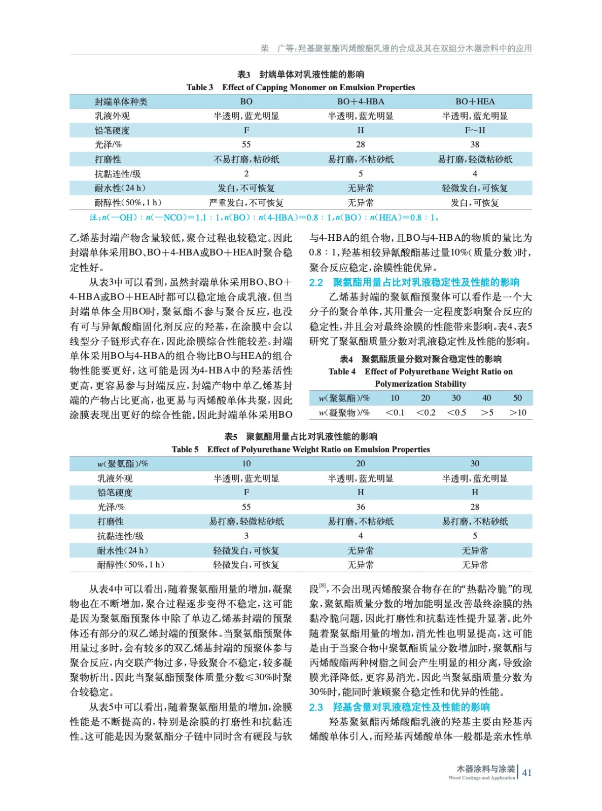 羥基聚氨酯丙烯酸酯乳液的合成及其在雙組分木器涂料中的應用