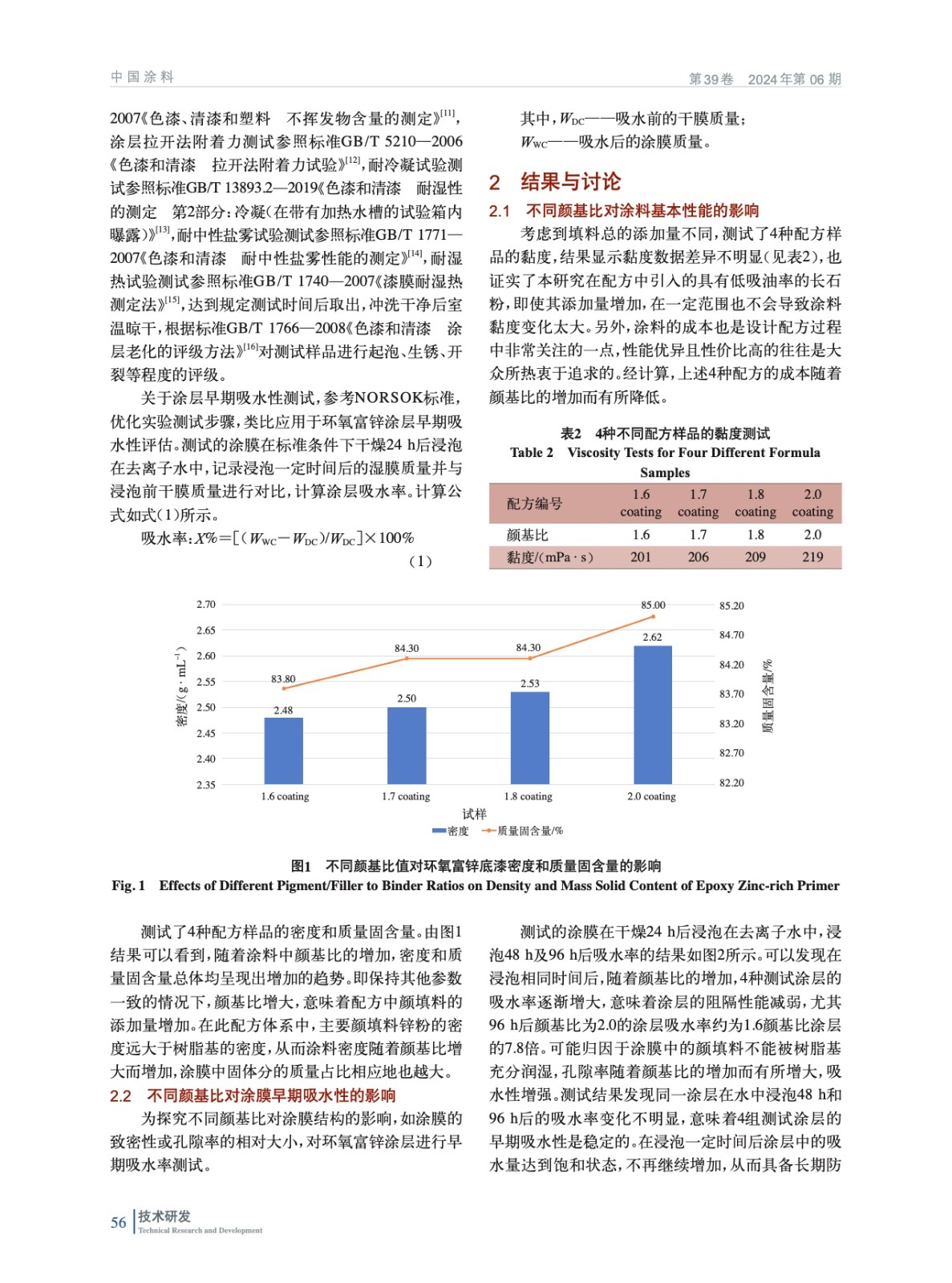 探究顏基比對80%鋅含量環(huán)氧涂料性能的影響