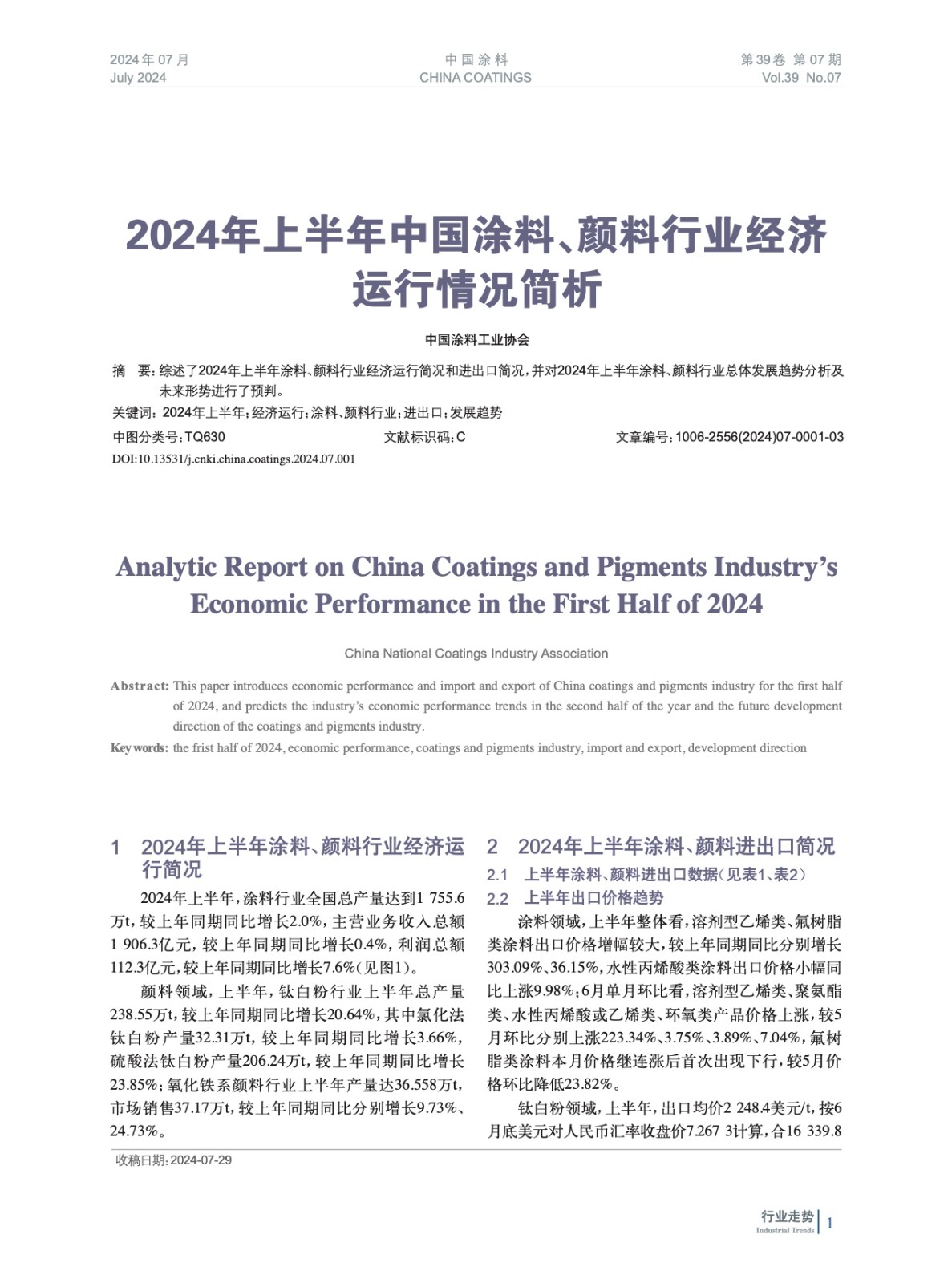 2024年上半年中國涂料、顏料行業(yè)經(jīng)濟運行情況簡析