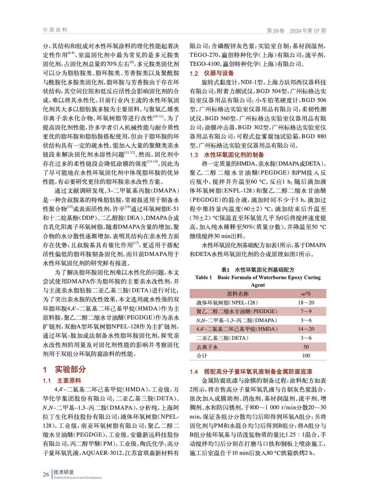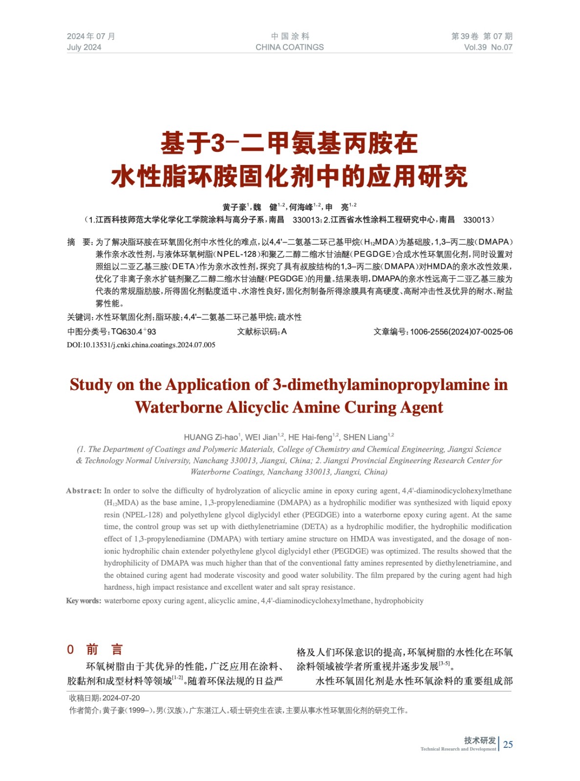 基于3–二甲氨基丙胺在水性脂環(huán)胺固化劑中的應(yīng)用研究