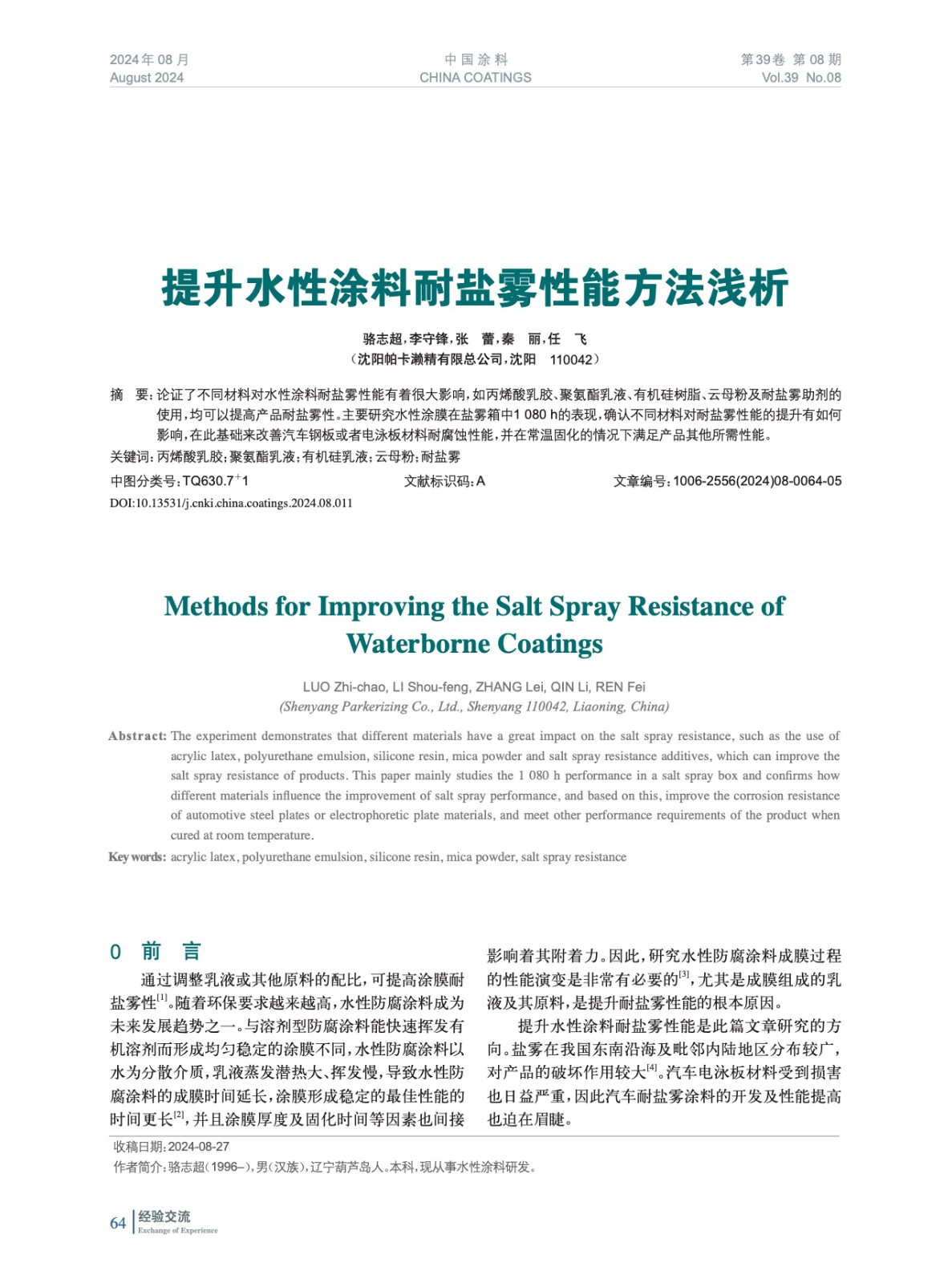 本文系作者@駱志超,李守鋒,張 蕾,秦 麗,任 飛 授權(quán)中國涂料網(wǎng)發(fā)表,并經(jīng)中國涂料網(wǎng)編輯,未經(jīng)允許不得轉(zhuǎn)載,如需轉(zhuǎn)載請(qǐng)聯(lián)系chinacoatingnet@vip.163.com