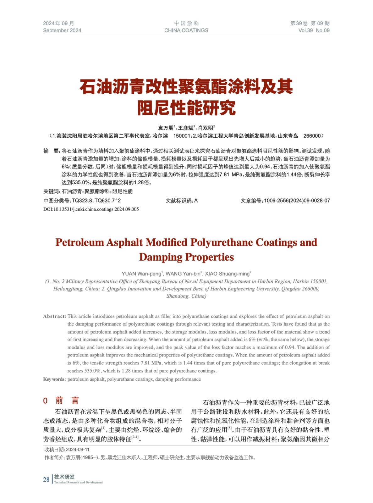 石油瀝青改性聚氨酯涂料及其阻尼性能研究