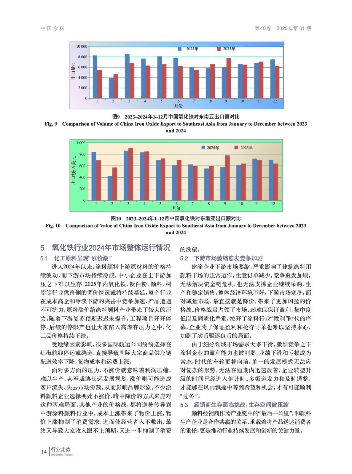 綜述了2024年中國氧化鐵行業所處的經濟環境,梳理了各項技術經濟指標完成情況、生產營銷情況,并對行業進出口數據進行了分析,回顧了氧化鐵行業2024年整體運行情況,并對2025年發展方向進行了展望。