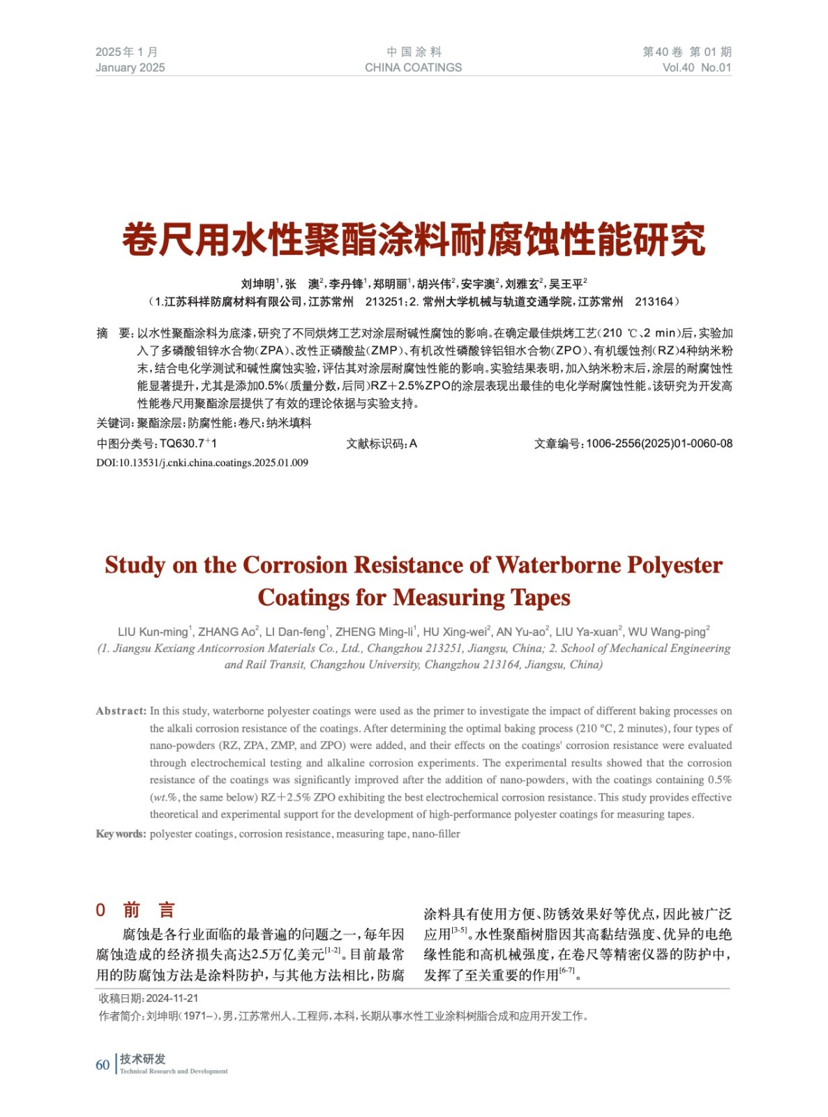 本文系作者@劉坤明,張 澳,李丹鋒,鄭明麗,胡興偉,安宇澳,劉雅玄,吳王平 授權(quán)中國涂料網(wǎng)發(fā)表,并經(jīng)中國涂料網(wǎng)編輯,未經(jīng)允許不得轉(zhuǎn)載,如需轉(zhuǎn)載請聯(lián)系chinacoatingnet@vip.163.com