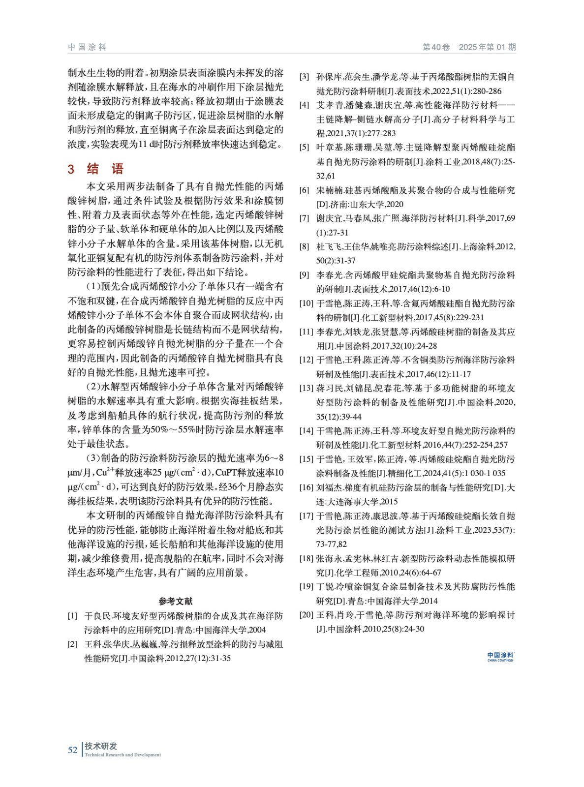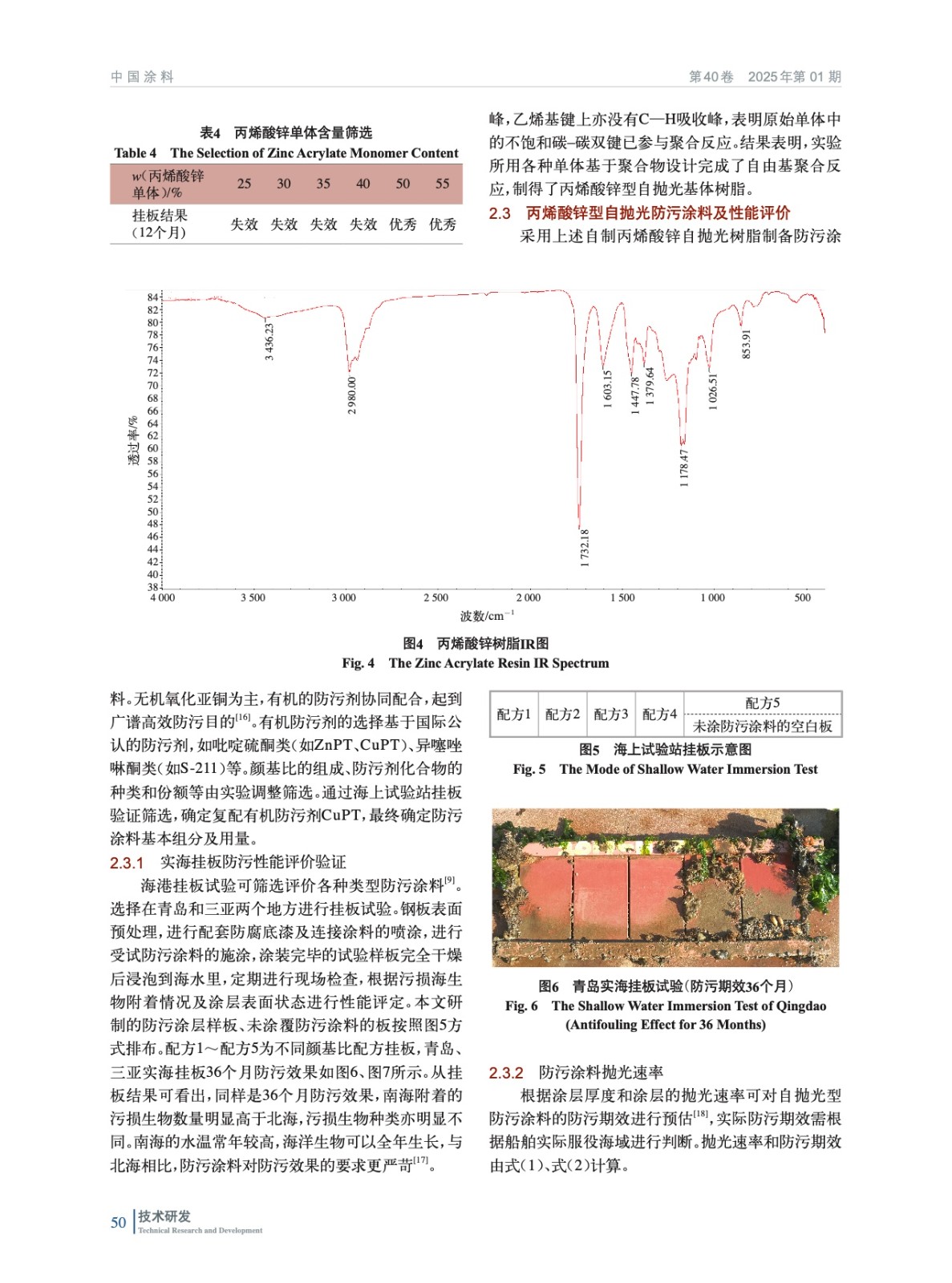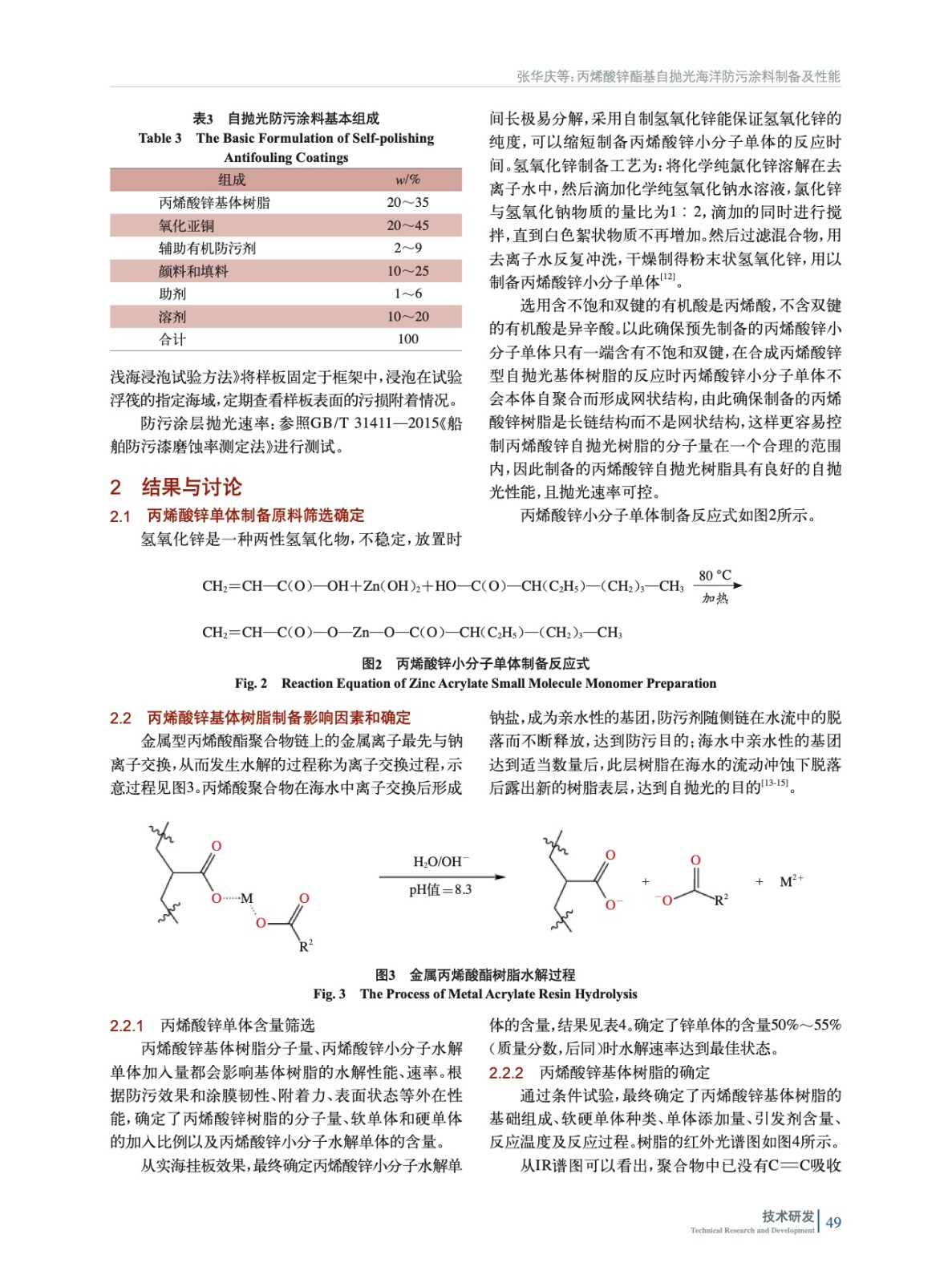 丙烯酸鋅酯基自拋光海洋防污涂料制備及性能