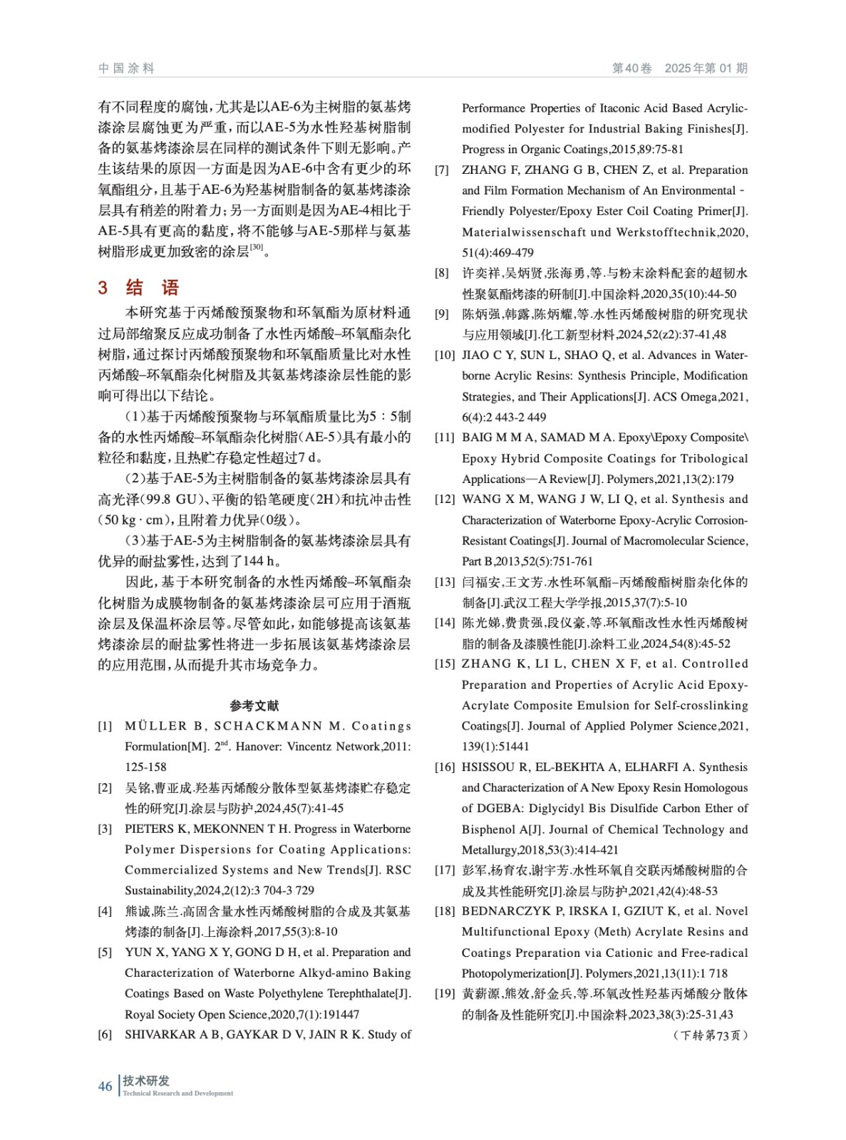 水性丙烯酸–環(huán)氧酯雜化樹脂制備及其氨基烤漆涂層性能研究