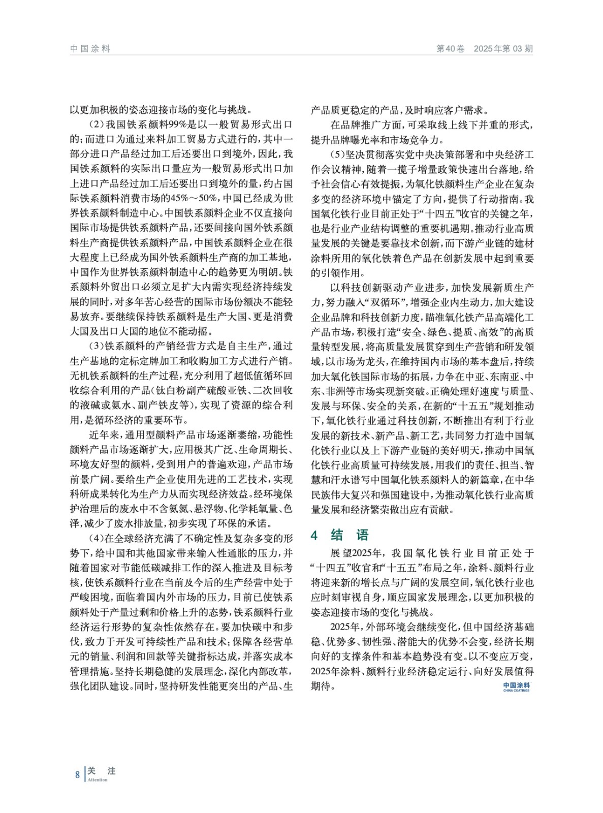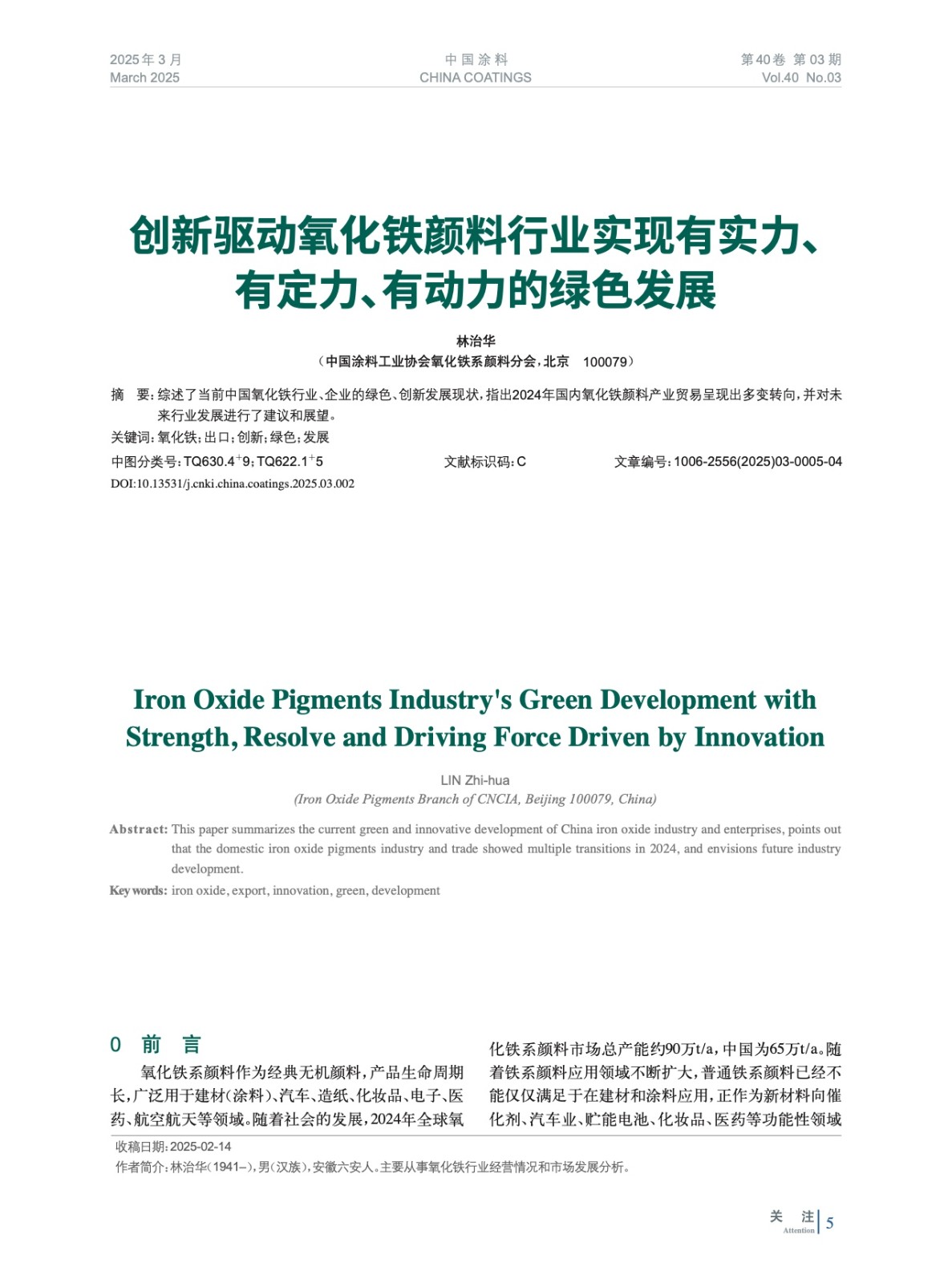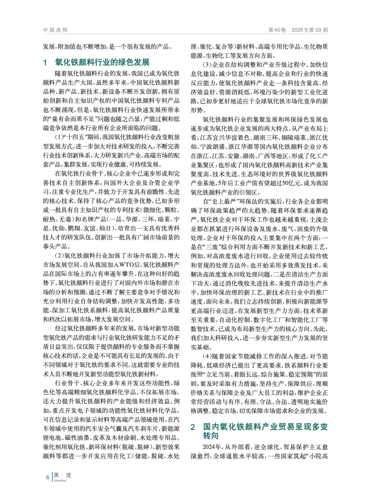 綜述了當前中國氧化鐵行業、企業的綠色、創新發展現狀,指出2024年國內氧化鐵顏料產業貿易呈現出多變轉向,并對未來行業發展進行了建議和展望。