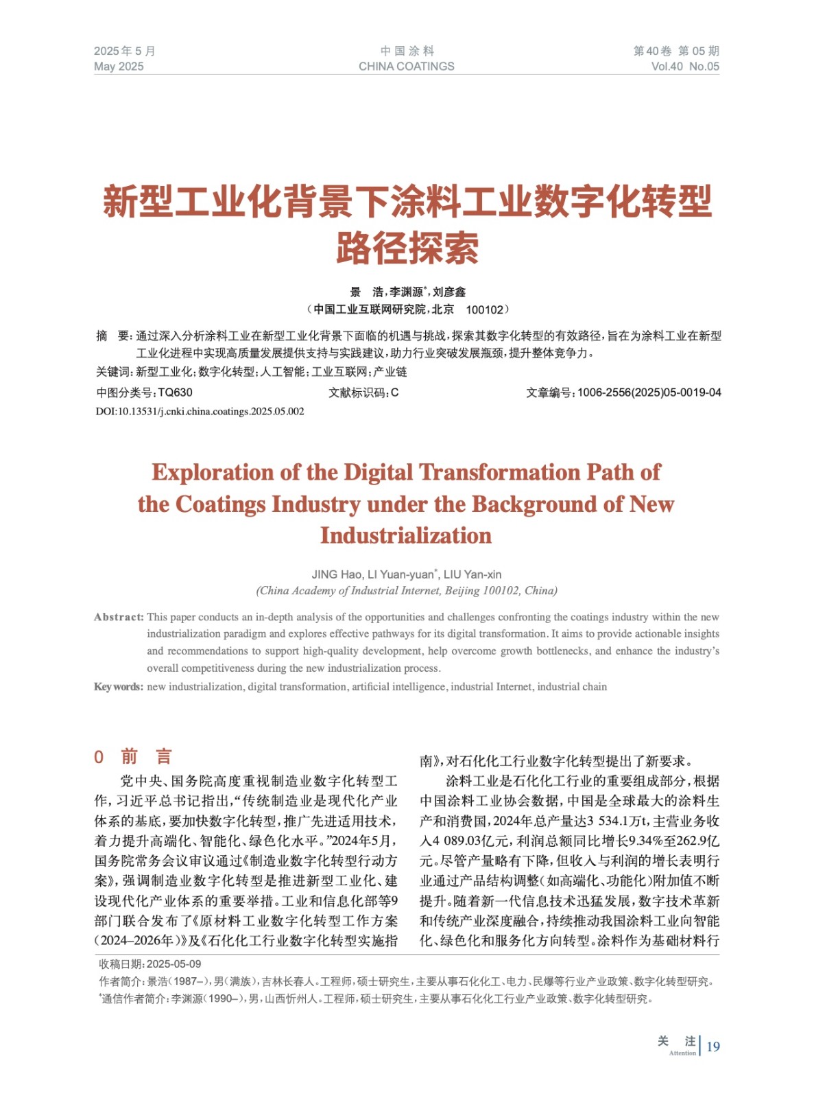 新型工業(yè)化背景下涂料工業(yè)數字化轉型路徑探索
