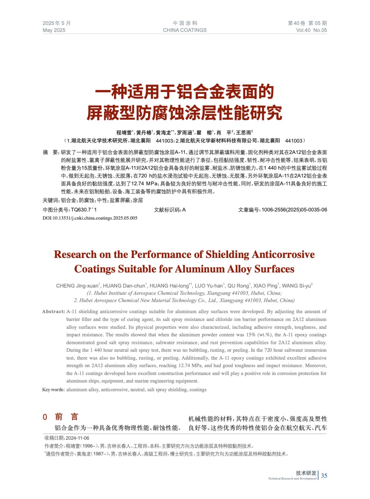 一種適用于鋁合金表面的屏蔽型防腐蝕涂層性能研究