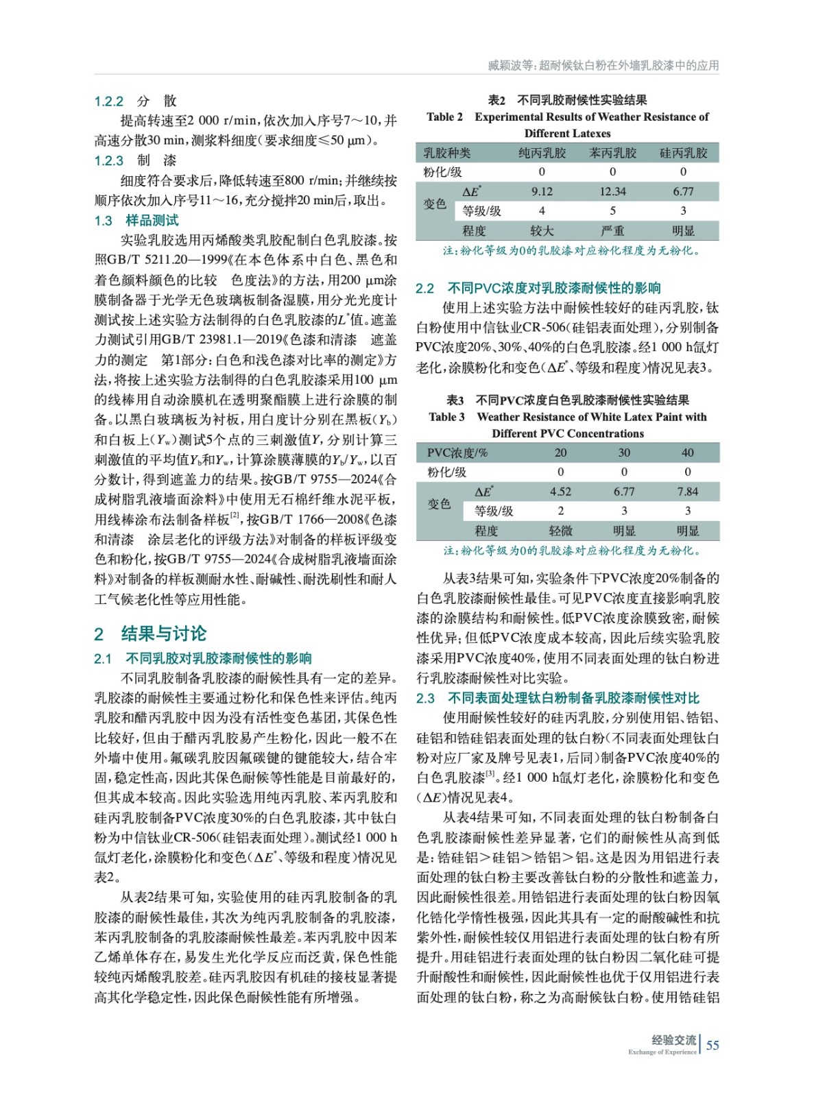 摘要:對(duì)比了幾種不同表面處理的鈦白粉在乳膠漆中的耐候性,確定了使用超耐候鈦白粉制備的PVC濃度為40%的乳膠漆,經(jīng)1 000 h氙燈老化后不僅耐候性?xún)?yōu)異,同時(shí)具有高L*值和強(qiáng)遮蓋力,并且其耐水性、耐堿性、耐洗刷性和耐人工氣候老化性都可達(dá)到國(guó)標(biāo)外墻面漆優(yōu)等品水平。超耐候鈦白粉可被廣泛使用于高端外墻乳膠漆中。