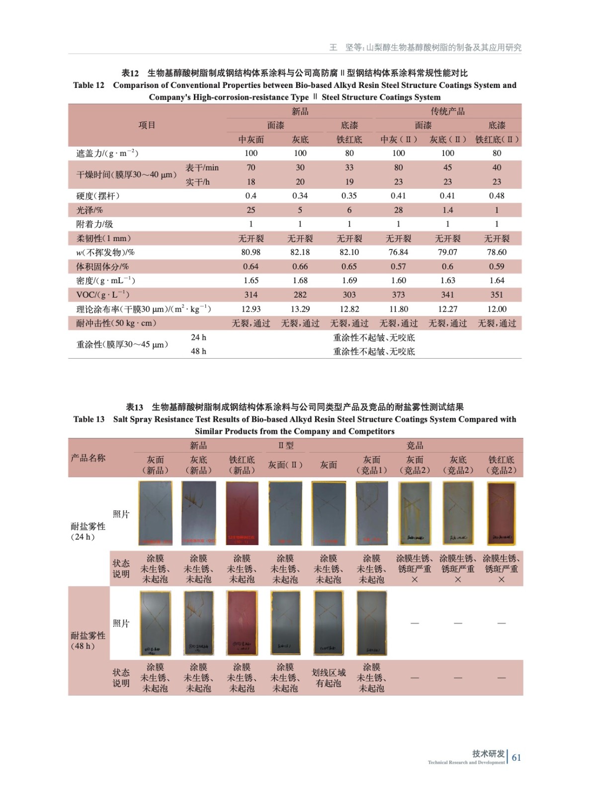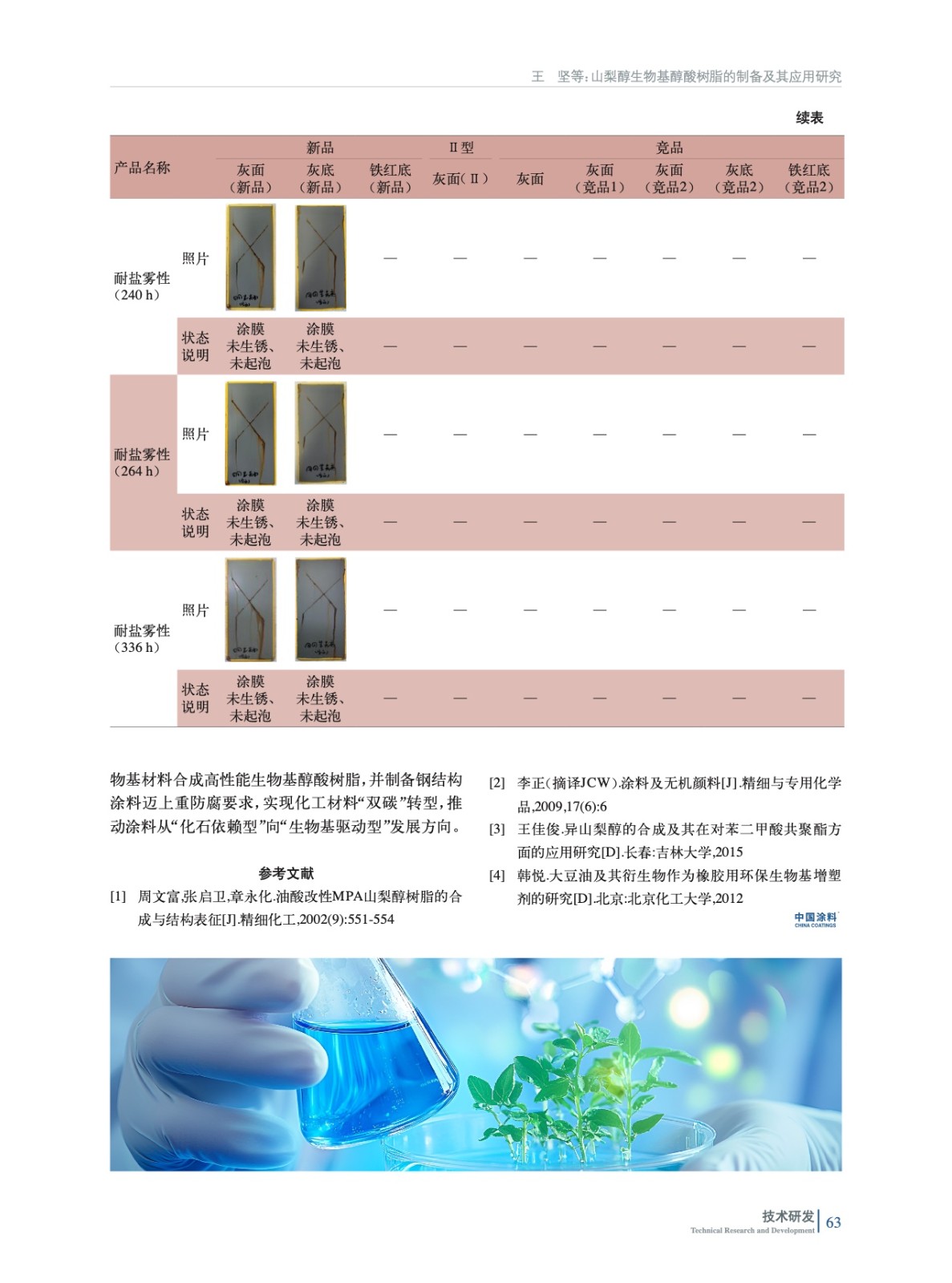 摘要:采用以山梨醇為多元醇在催化劑作用下進(jìn)行酯化反應(yīng),并運(yùn)用脂肪酸–高聚物法制備環(huán)境友好型醇酸樹脂。其是以植物油類衍生物和山梨醇為主要原材料,總生物基物質(zhì)占比約為50%以上,制成的環(huán)境友好型樹脂可用于制備鋼結(jié)構(gòu)涂料等產(chǎn)品,耐鹽霧能達(dá)96 h以上。結(jié)果表明:山梨醇生物基醇酸樹脂生物基物質(zhì)含量高,涂膜防腐性能更優(yōu)異。