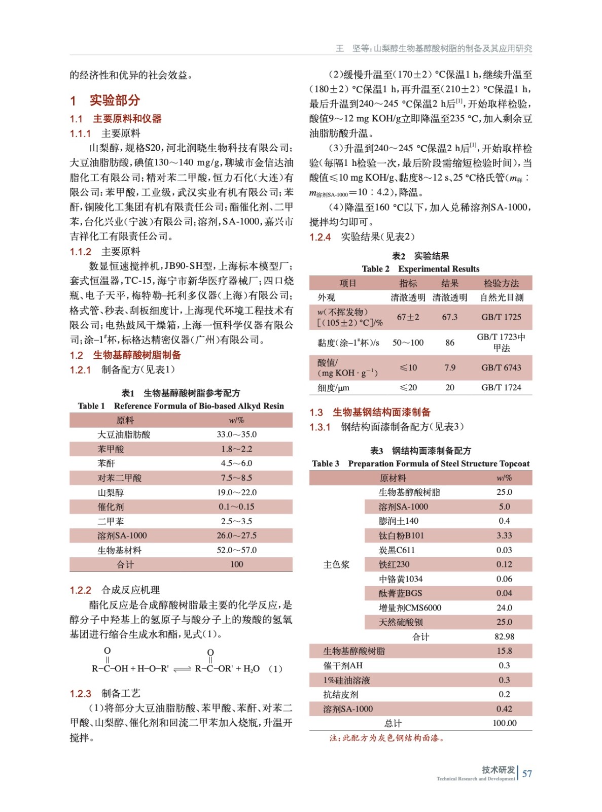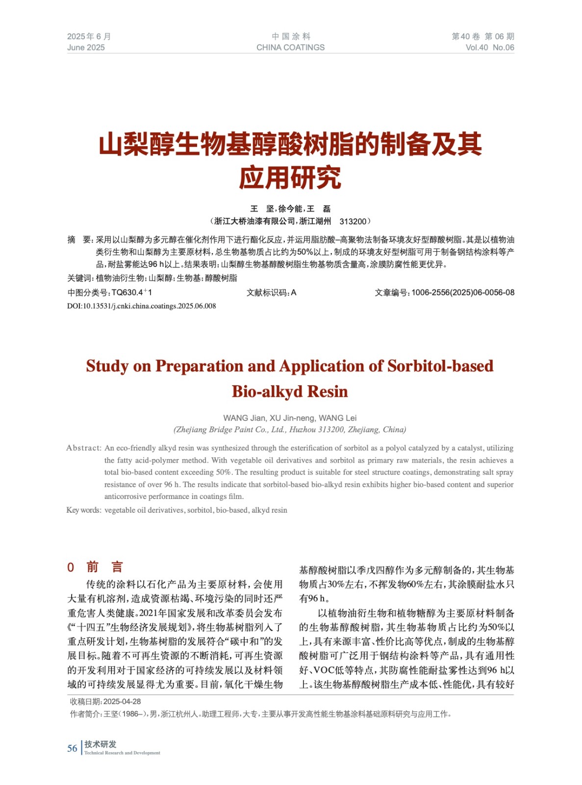山梨醇生物基醇酸樹脂的制備及其應(yīng)用研究