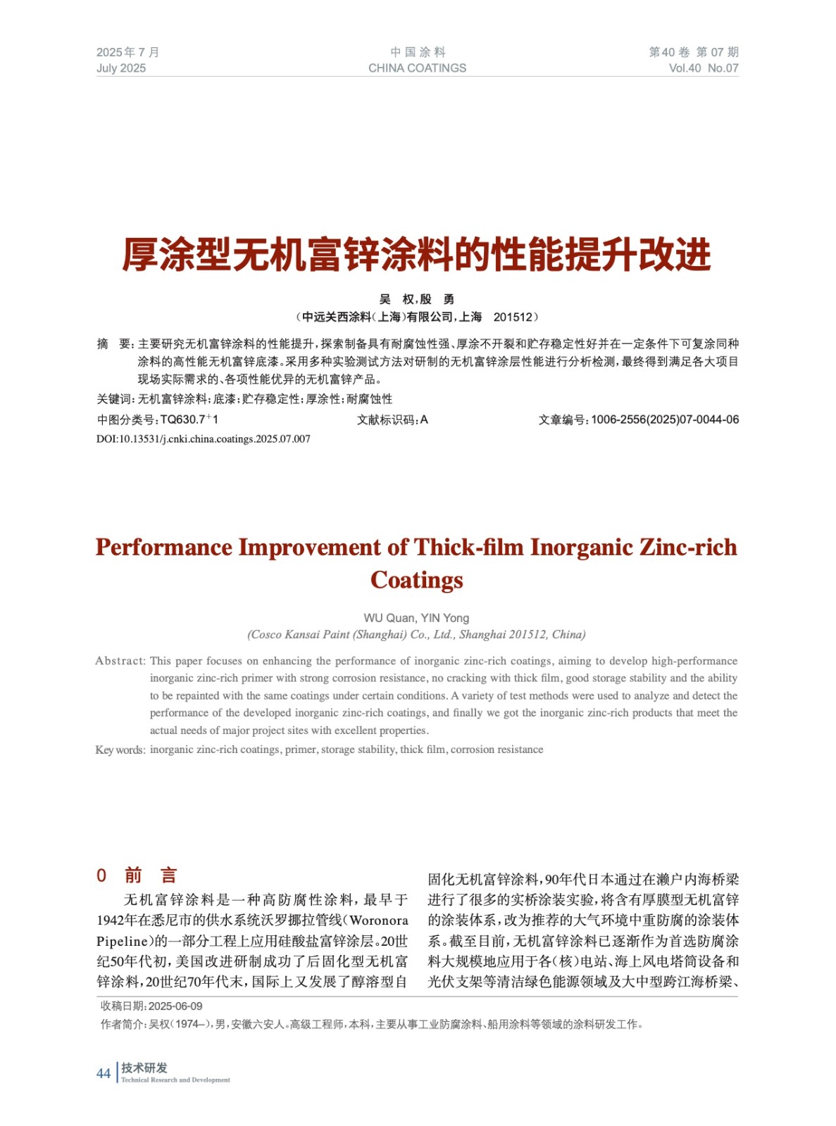 厚涂型無機(jī)富鋅涂料的性能提升改進(jìn)