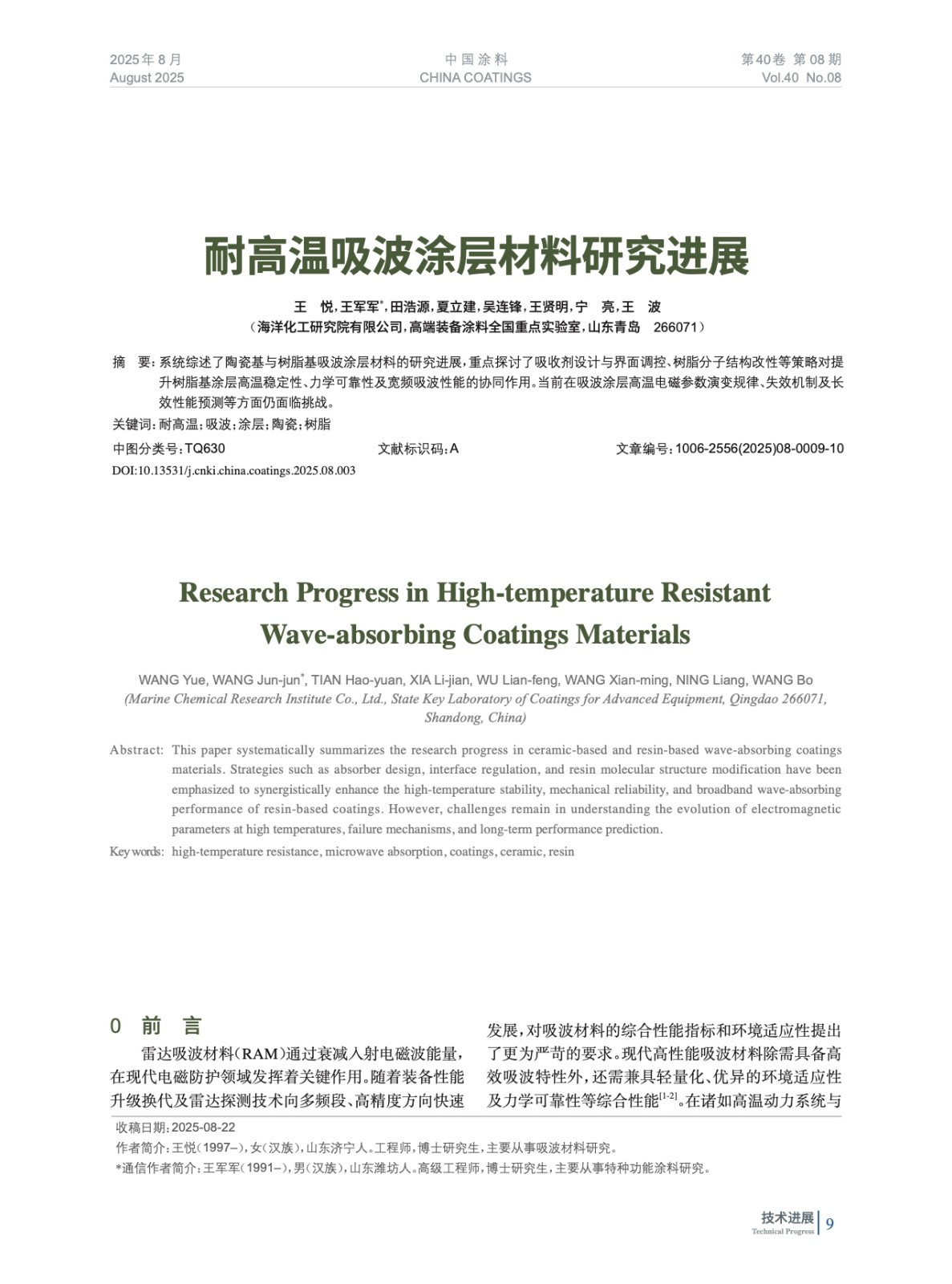 本文系作者@王 悅,王軍軍,田浩源,夏立建,吳連鋒,王賢明,寧 亮,王 波 授權中國涂料網(wǎng)發(fā)表,并經(jīng)中國涂料網(wǎng)編輯,未經(jīng)允許不得轉載,如需轉載請聯(lián)系chinacoatingnet@vip.163.com