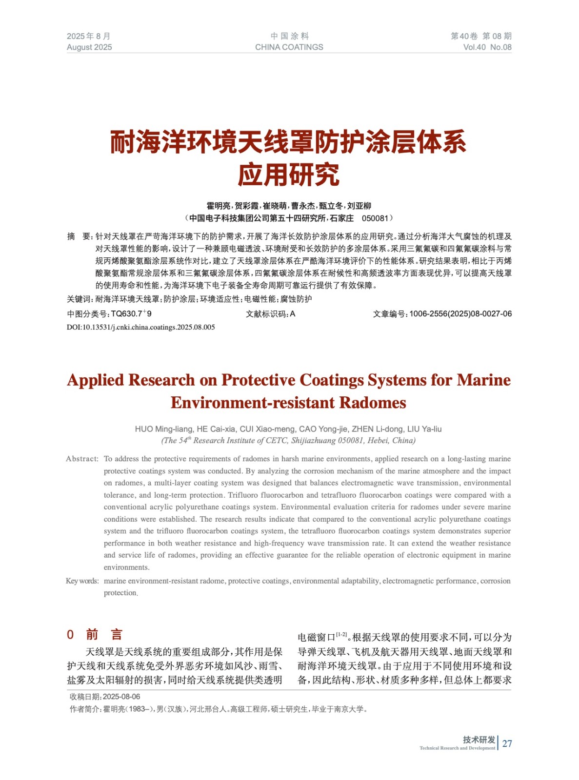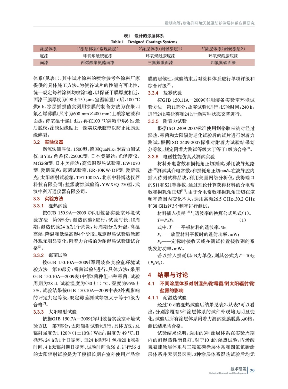 耐海洋環(huán)境天線罩防護(hù)涂層體系應(yīng)用研究