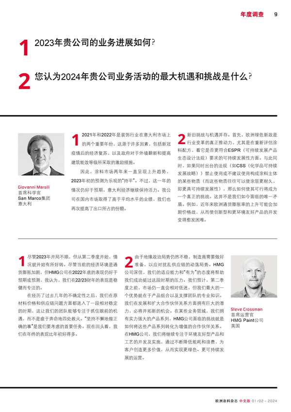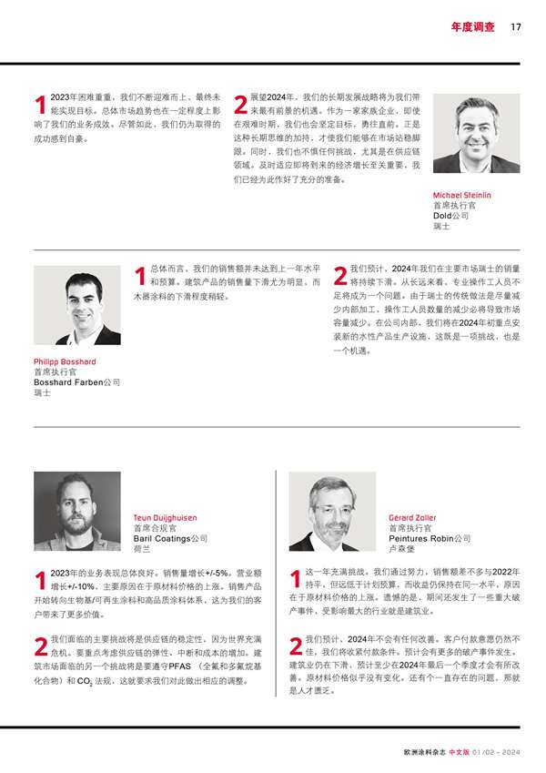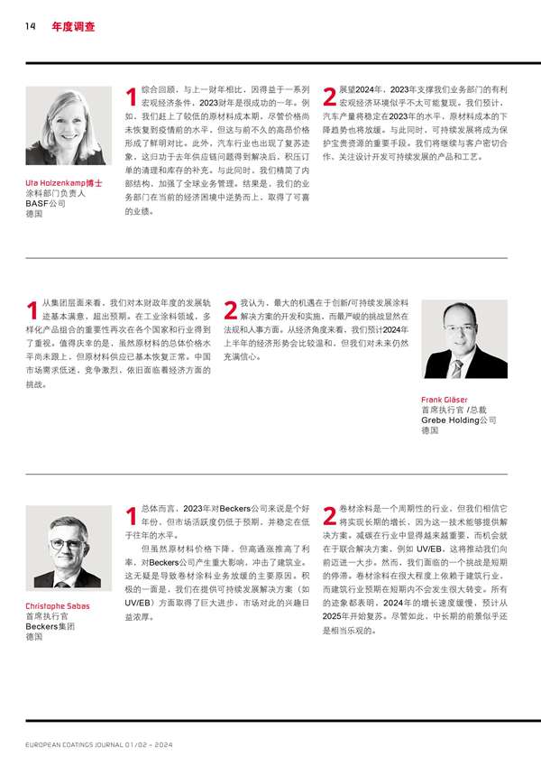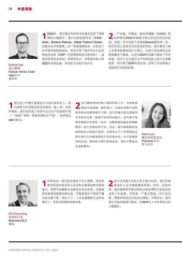 歐洲涂料生產商主要負責人的回顧和展望分享