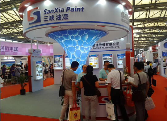 2015年中國國際涂料博覽會暨第十八屆中國國際涂料展覽會期間,渝三峽的展臺設計大氣清新,重點突出低碳環保理念。渝三峽通過展示歷史沿革、產品展示、產品優勢、業績展示等板塊充分展示了公司的發展變化和取得的輝煌成就。現場專業觀眾特別對渝三峽的水性工業漆產品表現出極大的興趣,不僅觀看樣品、索取資料,還與公司技術人員進行了深度交流,公司技術人員的專業講解得到了現場觀眾的認可和贊同。