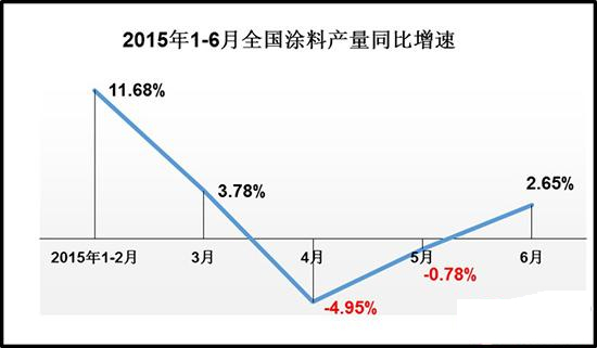 如今,涂料消費(fèi)稅已實(shí)施半年,對(duì)全國涂料銷量的影響也正逐步顯現(xiàn)。據(jù)來自中商產(chǎn)業(yè)研究院及國家統(tǒng)計(jì)局的數(shù)據(jù)顯示,2015年1-6月,我國涂料生產(chǎn)總量為778.74萬噸,同比增長僅為1.42%。而在今年1-2月,全國涂料總產(chǎn)量同比增速達(dá)到11.68%,3月增速降至3.78%。4月份全國涂料生產(chǎn)總量出現(xiàn)了13個(gè)月來首次負(fù)增長,同比下滑4.95%。