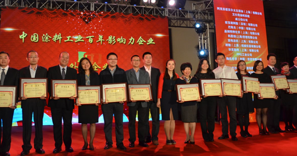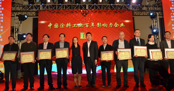 跨越百年,傳承夢想——中國涂料工業(yè)百年頒獎晚會,暨中國涂料工業(yè)協(xié)會成立30周年紀(jì)念活動2015年10月20日在北京隆重舉行,對中國涂料工業(yè)100年發(fā)展中做出貢獻(xiàn)的專家、學(xué)者、企業(yè)家以及優(yōu)秀企業(yè)進(jìn)行了表彰,獎項分為中國涂料工業(yè)百年功勛人物、中國涂料工業(yè)百年影響力人物、中國涂料工業(yè)百年杰出企業(yè)家、中國涂料工業(yè)百年突出貢獻(xiàn)人物、中國涂料工業(yè)百年影響力企業(yè)、中國涂料工業(yè)百年百強(qiáng)企業(yè)進(jìn)行了表彰,并對2015中國國際涂料博覽會-中國涂料百強(qiáng)企業(yè)聯(lián)展進(jìn)行了授牌。
