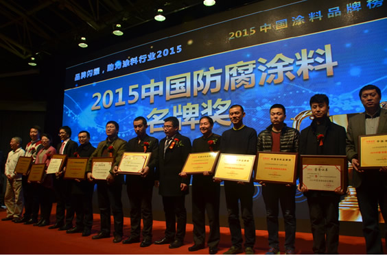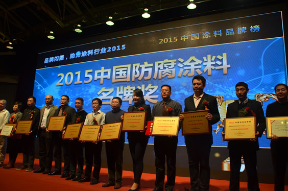 2015年12月18日晚,在北京舉辦的“2015中國涂料品牌榜頒獎活動”中,“2015中國涂料品牌榜”隆重揭曉。共評出中國建筑涂料名牌獎、中國防腐涂料名牌獎、中國木器涂料名牌獎、中國汽車涂料名牌獎、中國藝術涂料名牌獎、中國涂料裝備名牌獎、中國涂料顏填料名牌獎、中國涂料原輔材料名牌獎、中國涂料行業發展潛力企業獎、中國涂料行業精英獎、中國涂料行業伯樂獎11類獎項,上榜品牌、企業及個人348個。
