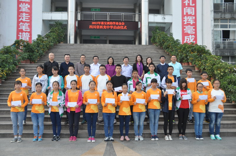 10月19日,2015年嘉寶莉助學啟動儀式在四川省西充中學拉開序幕。馮浪等來自西充縣轄19個鄉鎮的25名高一優秀貧困學子獲得了每人2000元的資助,并將連續獲得高中三年的資助。這也是嘉寶莉助學點首次落戶第一屆中央人民政府副主席、民盟創始人張瀾先生的故里。