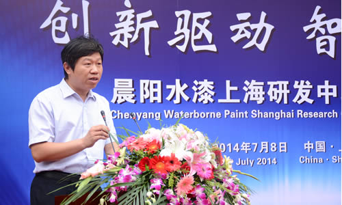 晨陽集團副總裁花東栓在晨陽水漆上海研發中心揭牌儀式上講話