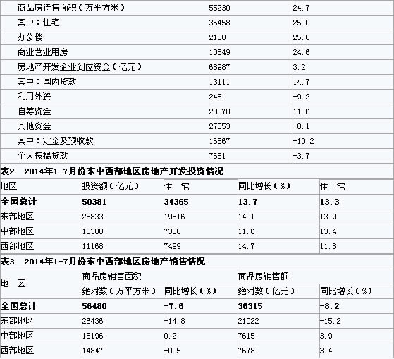 2014年1-7月份,全國房地產開發投資50381億元,同比名義增長13.7%,增速比1-6月份回落0.4個百分點。其中,住宅投資34365億元,增長13.3%,增速回落0.4個百分點,占房地產開發投資的比重為68.2%。