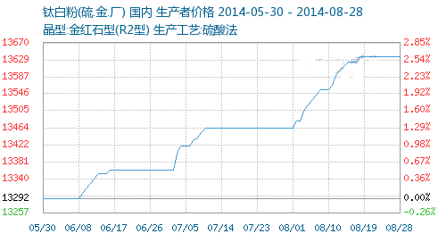 據(jù)數(shù)據(jù)統(tǒng)計,國內(nèi)鈦白粉出口量從4月起,曾連續(xù)第3次同比增幅逾5成,但70.81%、54.93%、53.88%、41.21%的漲幅已現(xiàn)萎縮,一旦外貿(mào)出貨受阻,“瘸腿”的市場或就此“癱瘓”,但站在大企的角度看,并不愿就此罷手5個月積累的漲價形勢,遂于此,我們大膽的猜測:9月底或再度拉漲,然后僵持企穩(wěn),最終小幅度暗降,“削足適履”國內(nèi)的弱勢需求。目前國內(nèi)多數(shù)硫酸法金紅石型和銳鈦型鈦白粉的主流報價在11800-13500元/噸和9500-10800元/噸(均含稅)。生意社化工分社鈦白粉分析師楊遜認為:短期看,持穩(wěn)數(shù)日的行情或作為后市“素材”,個企的突襲逆漲,鈦白粉或入再漲前奏,不排除西南龍企9月續(xù)漲國內(nèi)價格。