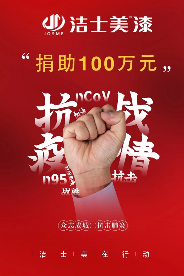 潔士美漆捐款100萬元支援新冠肺炎疫情阻擊戰