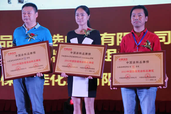 晨陽集團(tuán)總裁助理呂秋紅代表晨陽集團(tuán)領(lǐng)取中國防腐類涂料名牌獎(jiǎng)