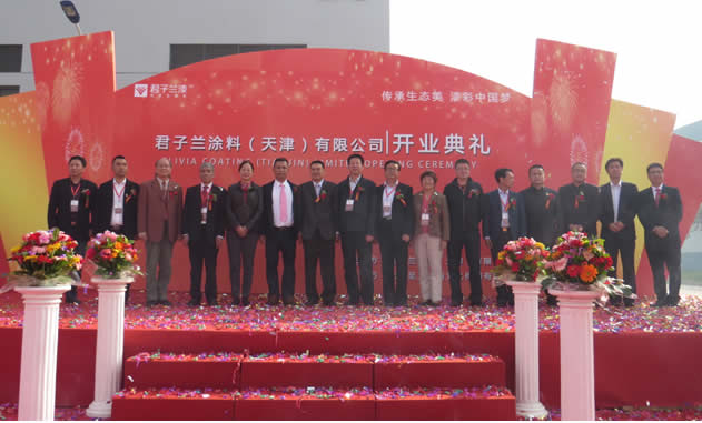 君子蘭涂料(天津)有限公司新廠開業典禮在2014年10月15日上午隆重舉行,來自中國涂料協會、木門協會和君子蘭集團上海、成都、廣東等分公司君子蘭人歡聚一堂、共襄盛舉,共同慶祝君子蘭涂料(天津)有限公司隆重開業。