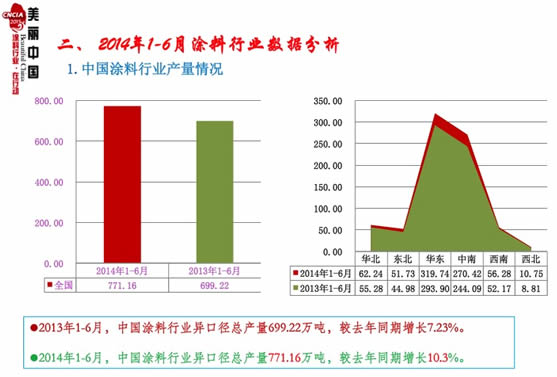 2014年我國的宏觀政策調(diào)整為“穩(wěn)增長、調(diào)結(jié)構(gòu)、不刺激”,宏觀經(jīng)濟(jì)進(jìn)入新常態(tài)階段,在此經(jīng)濟(jì)換檔期,“縱觀整個(gè)行業(yè),呈現(xiàn)出涂料產(chǎn)量、產(chǎn)值增速放緩但好于上年同期,企業(yè)利潤普遍有所增加,民用涂料經(jīng)營狀況好于工業(yè)涂料,民用涂料的低利潤和工業(yè)涂料的較高利潤逐漸趨同,行業(yè)自律和市場監(jiān)測在行業(yè)開始興起,VOC越來越受到重視,含鉛涂料限制使用的突出特點(diǎn)。”(引自中國涂料工業(yè)協(xié)會(huì)會(huì)長孫蓮英主題報(bào)告)