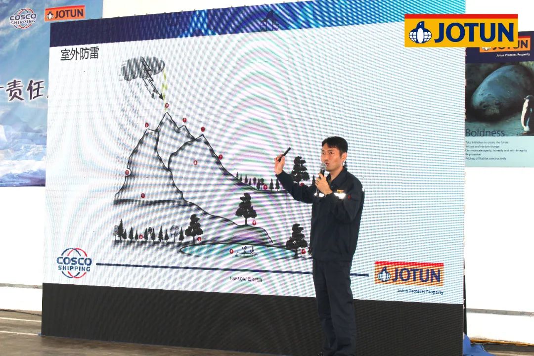 應急演練過后,HSE&QA部經(jīng)理鄧國棟為大家進行了“夏季四防”主題培訓,講解夏季常見的洪水、雷電、中暑、火災這四種突發(fā)事件的預防和應對措施。