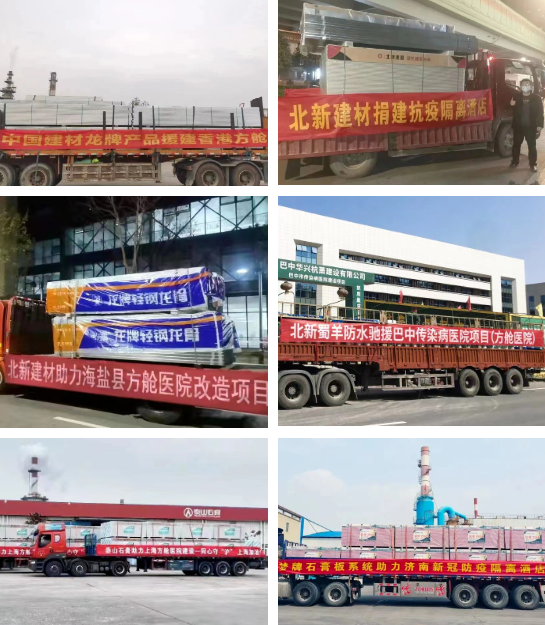 在戰“疫”的號角下,北新建材緊急動員、全面部署,充分發揮產品全、質量高、環保好、基地廣的優勢,按照“優先安排、優先配車、優先裝車、優先發運”的原則安排建材物資以及其他抗疫物資捐贈事宜,以強烈的社會責任感積極參與到疫情防控阻擊戰當中,跑出了抗擊疫情的“北新速度”。