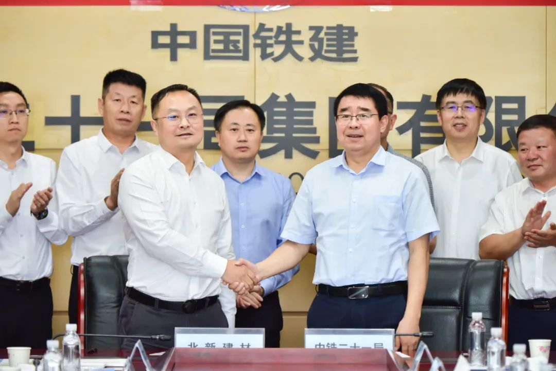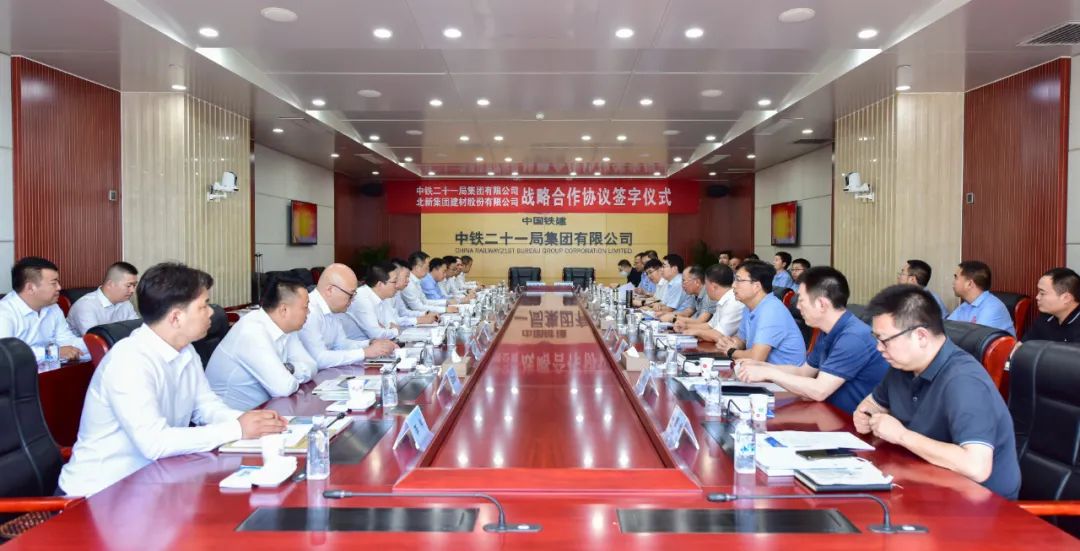 中鐵二十一局集團(tuán)、西部鐵建工程材料科技有限公司和北新建材有關(guān)部門(mén)、單位負(fù)責(zé)同志參加簽約儀式和座談。中鐵二十一局集團(tuán)有限公司隸屬國(guó)務(wù)院國(guó)資委下屬的中國(guó)鐵建股份有限公司,是集工程建設(shè)、科技研發(fā)、房地產(chǎn)開(kāi)發(fā)、礦產(chǎn)資源開(kāi)發(fā)及商貿(mào)經(jīng)營(yíng)等于一體的國(guó)有特大型建筑企業(yè)集團(tuán)。擁有施工機(jī)械、檢測(cè)等設(shè)備4137余臺(tái)(套),年度施工能力400億元以上。先后完成了青藏鐵路等60多項(xiàng)國(guó)家鐵路干線工程建設(shè)、13000多條公里電氣化鐵路工程建設(shè),都汶高速等40多條高等級(jí)公路建設(shè)。曾先后榮獲中國(guó)建筑工程魯班獎(jiǎng)、詹天佑獎(jiǎng)、廣廈獎(jiǎng)、國(guó)家優(yōu)質(zhì)工程金(銀)獎(jiǎng)、全國(guó)百項(xiàng)精品工程獎(jiǎng)30多項(xiàng);榮獲省(部)級(jí)優(yōu)質(zhì)工程獎(jiǎng)60多項(xiàng);榮獲國(guó)家、省部級(jí)科技進(jìn)步獎(jiǎng)30多項(xiàng),其中國(guó)家科技進(jìn)步特等獎(jiǎng)1項(xiàng);國(guó)家和省部級(jí)工法40多項(xiàng)、專(zhuān)利130多項(xiàng),其中發(fā)明專(zhuān)利30多項(xiàng),創(chuàng)中國(guó)建筑施工企業(yè)新紀(jì)錄6項(xiàng)。