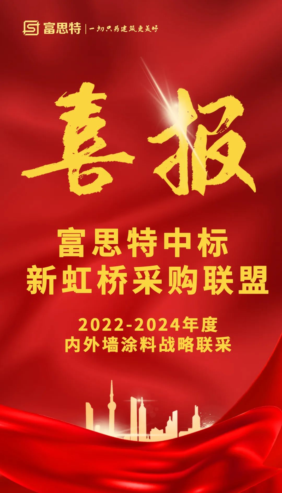 近日又傳捷報,新虹橋采購聯盟(簡稱“新虹聯”)公布內外墻涂料聯采中標結果。富思特憑借強大的綜合實力連續成功中標2022-2024年度新虹聯內墻、外墻涂料戰略聯采項目。