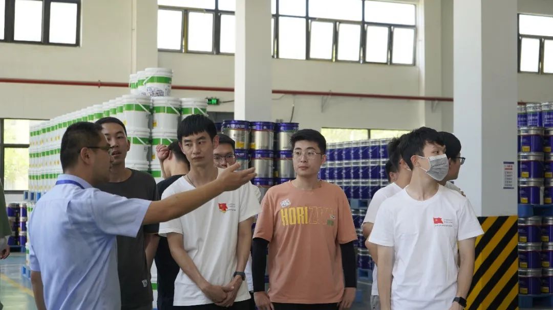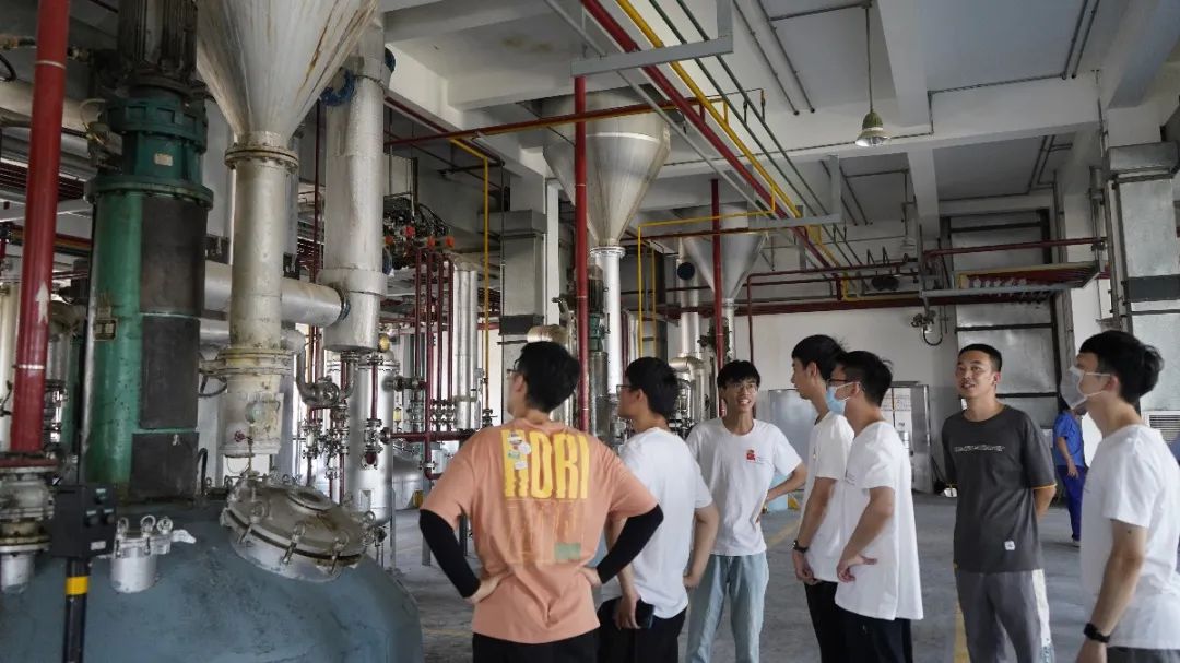 生產(chǎn)部部長李丕渡帶領(lǐng)浙江工業(yè)大學(xué)化工學(xué)院全體師生參觀數(shù)智化生產(chǎn)車間。