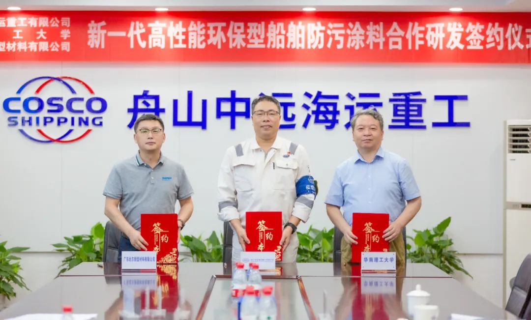 為積極踐行船舶全生命周期管理理念,探索環(huán)保、高性能、長效的防腐材料,助力企業(yè)高質量發(fā)展,7月29日,舟山中遠海運重工與華南理工大學、廣東達爾新型材料有限公司簽署“新一代高性能環(huán)保型船舶防污涂料合作研發(fā)協議”。
