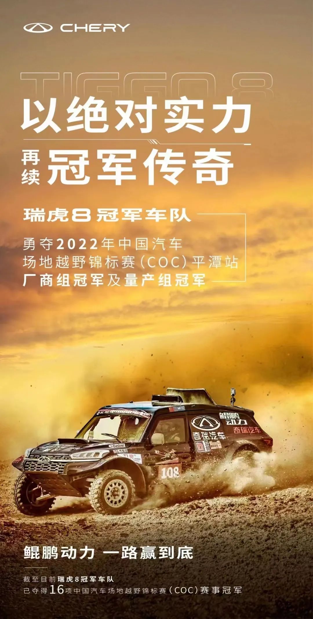 2022中國汽車場地越野錦標賽的賽季首站,于近日在福建平潭落下帷幕。奇瑞瑞虎賽車隊憑借豪華的陣容和優異的表現,包攬了“量產組”及“廠商組”冠軍。