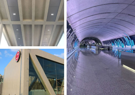 針對交通建設中對美觀度和性能雙重需求,三棵樹科創藝石匠心清砼系列仿清水混凝土效果,因其工業裝飾風格,以及材料具備防火A級性能,廣泛用于高鐵、機場、地鐵等內外墻,實現交通建筑與周邊環境功能、建筑風貌協調統一。