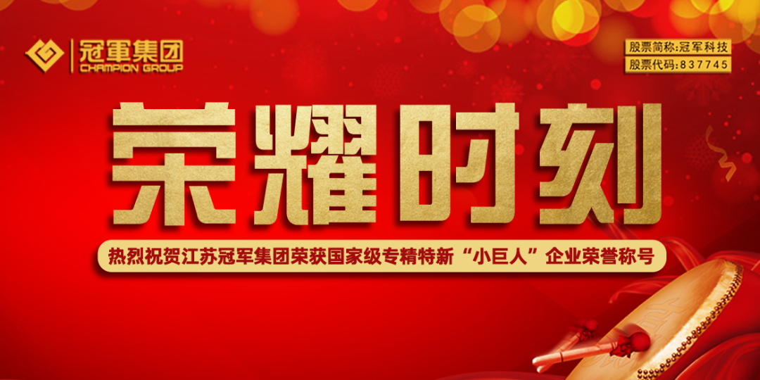 江蘇冠軍集團成功入選第四批專精特新“小巨人”名單,這是繼去年集團獲評省級專精特新小巨人企業之后,一年內再創新高,獲得的又一重量級榮譽。