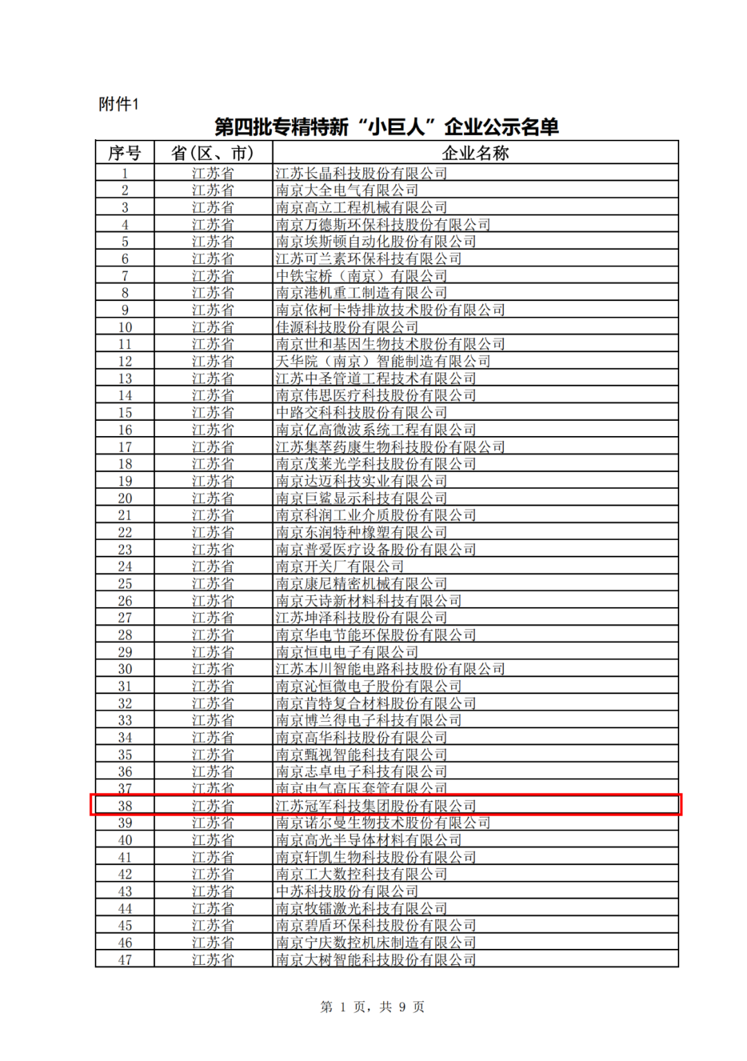 8月9日,根據國家工信部統一部署,江蘇省工信廳發布了《關于江蘇省第四批專精特新“小巨人”企業和第一批專精特新“小巨人”復核通過企業名單的公示》,全省共425家企業進入第四批專精特新“小巨人”名單,其中南京市入圍62家,江蘇冠軍集團成功入選,這是繼去年集團獲評省級專精特新小巨人企業之后,一年內再創新高,獲得的又一重量級榮譽。