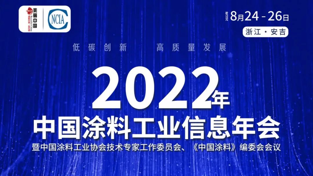 8月24–26日,2022年中國涂料工業信息年會暨中國涂料工業協會技術專家工作委員會、《中國涂料》編委會會議在在浙江湖州安吉縣隆重召開,來自政府部門、涂料企業、原材料企業、設備企業、互聯網公司及行業專家的約500余位代表將出席會議。