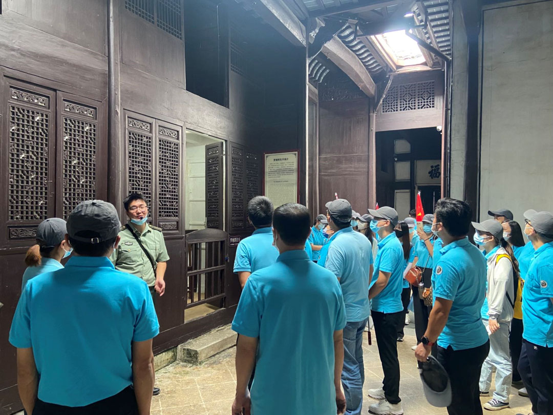 全體黨員在新四軍軍部舊址紀(jì)念館前合影