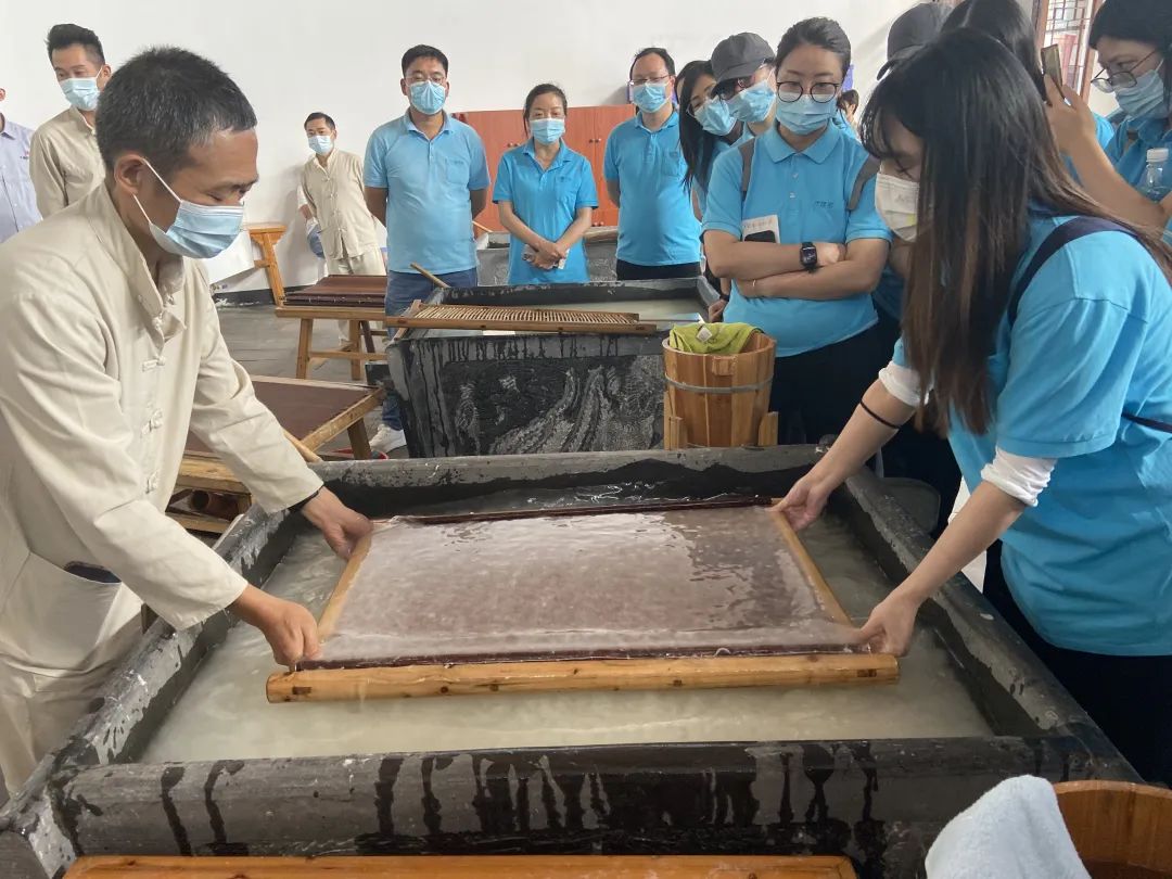 在造紙廠工作人員的帶領(lǐng)下,黨員們也積極參與了宣紙的各項(xiàng)制造流程,并在工作人員指導(dǎo)下按照傳統(tǒng)工藝從原材料手工制作出了宣紙,大家深深感受到宣紙文化的魅力以及勞動(dòng)人民的無(wú)窮智慧和中華文化的博大精深。