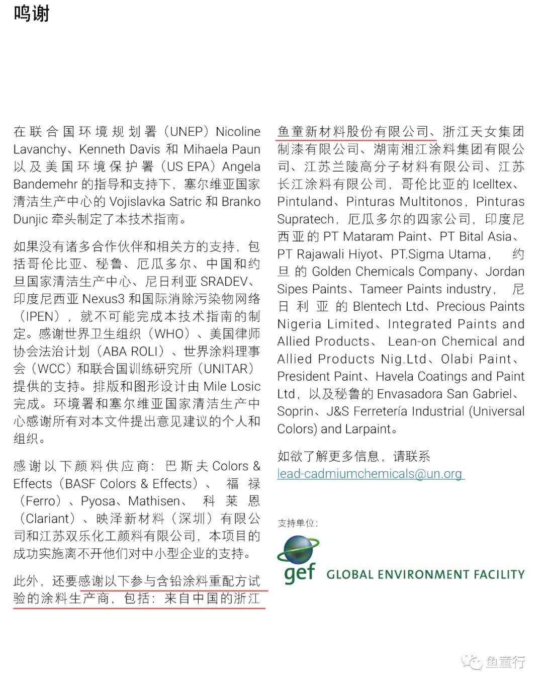 由聯合國環(huán)境規(guī)劃署 (UNEP)與全球環(huán)境基金牽頭,中國環(huán)境科學研究院(國家清潔生產中心)承擔進行的中小型含鉛涂料生產企業(yè)技術試點項目,經過兩年多的努力,項目成果之一《含鉛涂料重配方技術指南》在聯合國環(huán)境規(guī)劃署官網上正式發(fā)布了。浙江魚童新材料股份有限公司作為船舶涂料試點企業(yè),參與的各項工作得到聯合國環(huán)境規(guī)劃署的高度認可,在聯合國出版物中得到了官方感謝。