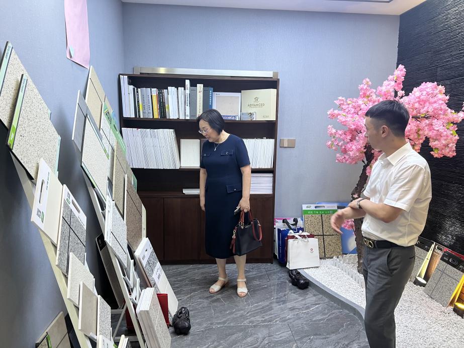 與余姚市鑫虹環(huán)保建材有限公司周縝負(fù)責(zé)人針對(duì)建筑涂料發(fā)展趨勢(shì)、企業(yè)如何保持可持續(xù)發(fā)展、用工問題等進(jìn)行了交流