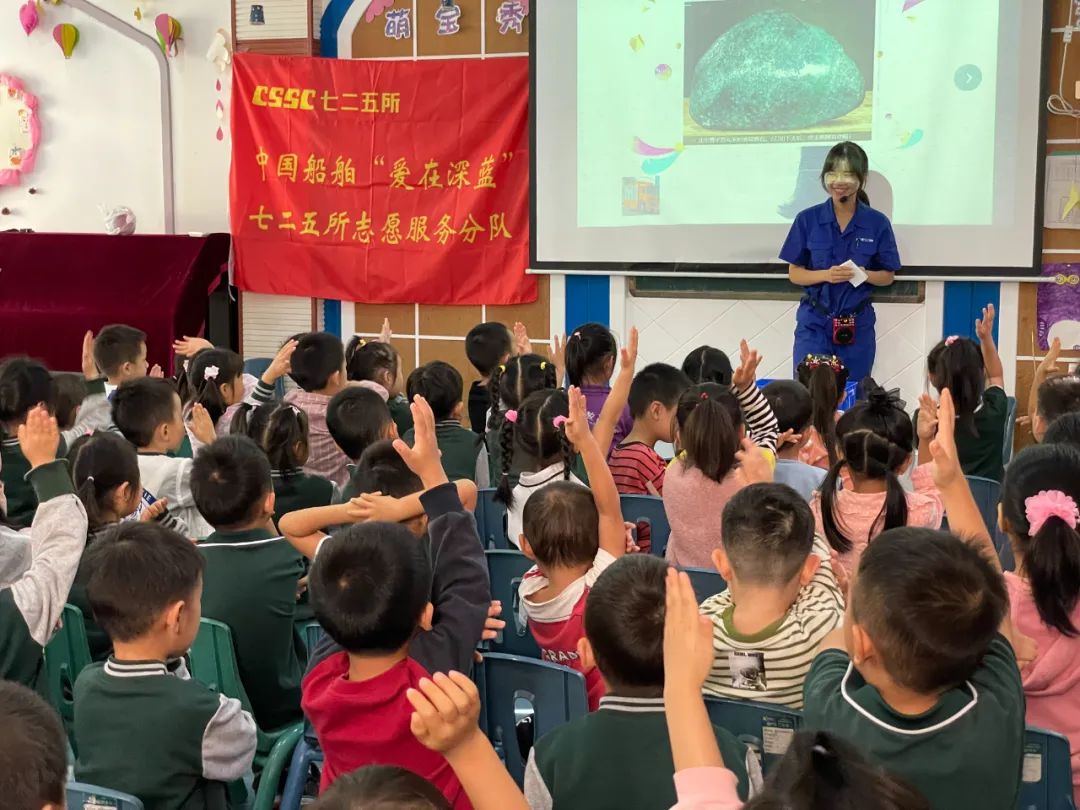 為積極履行央企社會責任,進一步做優(yōu)中國船舶“愛在深藍”團青品牌,向全社會展示奉獻擔當的七二五所青年形象,以實際行動踐行“請黨放心、強國有我”的青春誓言。9月28日,來自第六研究室的青年志愿者在所團委的組織下,到瑞科幼兒園開展船舶科普進校園活動。全園200余名兒童在志愿者的帶領下,走進了一個屬于科學、屬于船舶的世界。